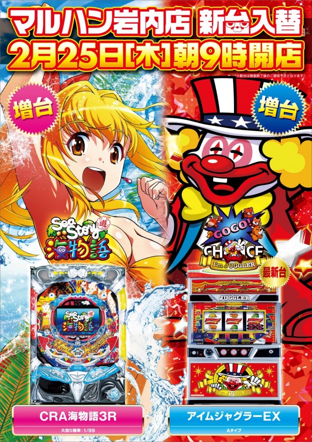 2月25日【木】新台入替!朝9時開店♪