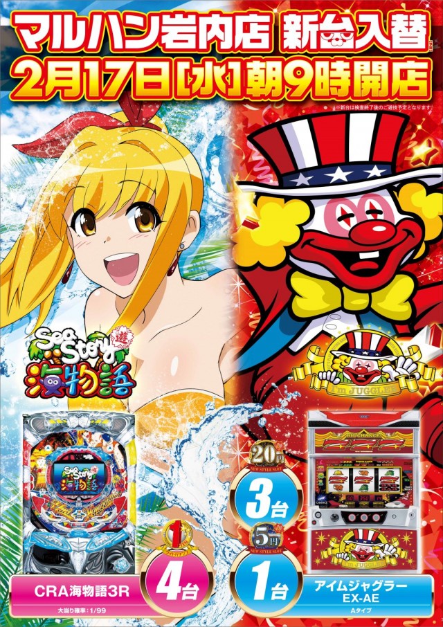 2月17日【水】新台入替!朝9時開店♪