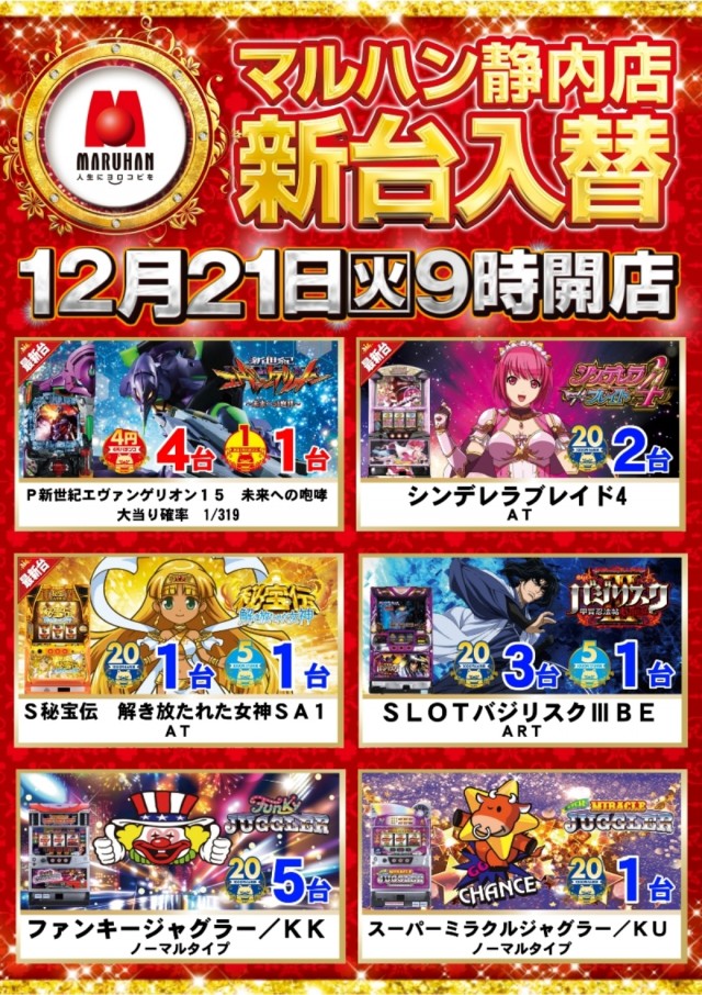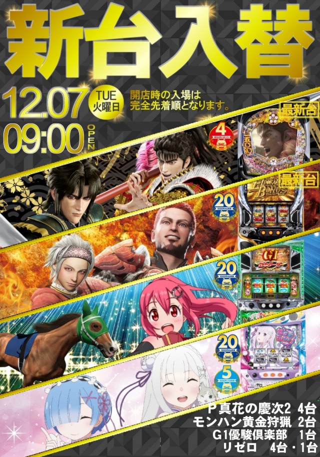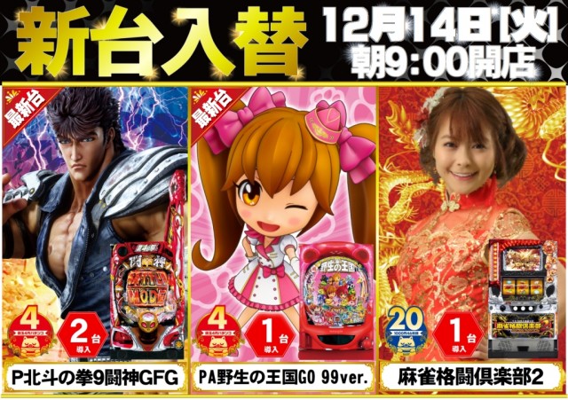 ☆12月14日(火)☆新台入替☆朝9時開店☆
