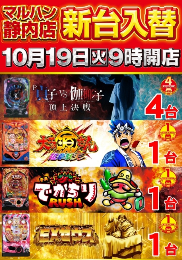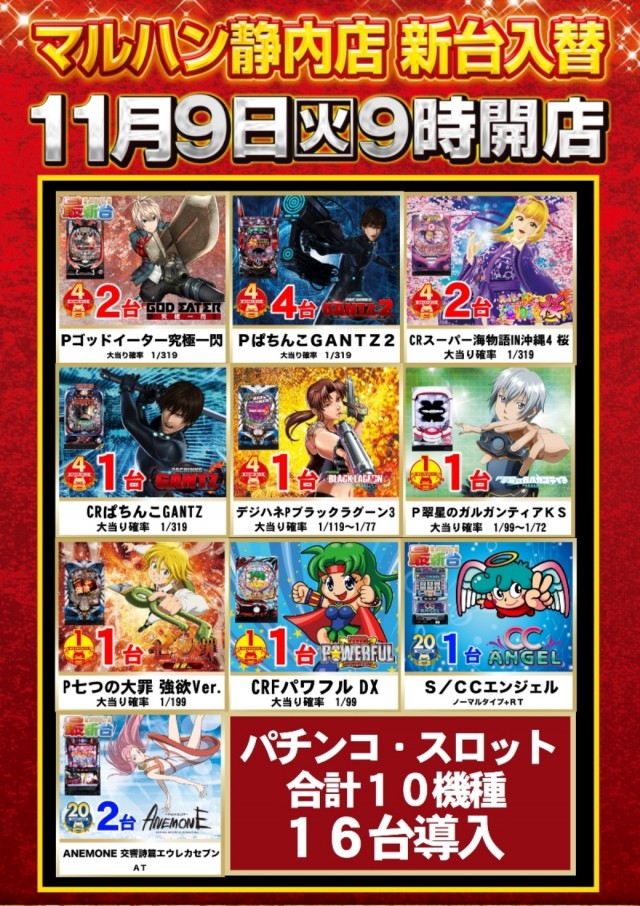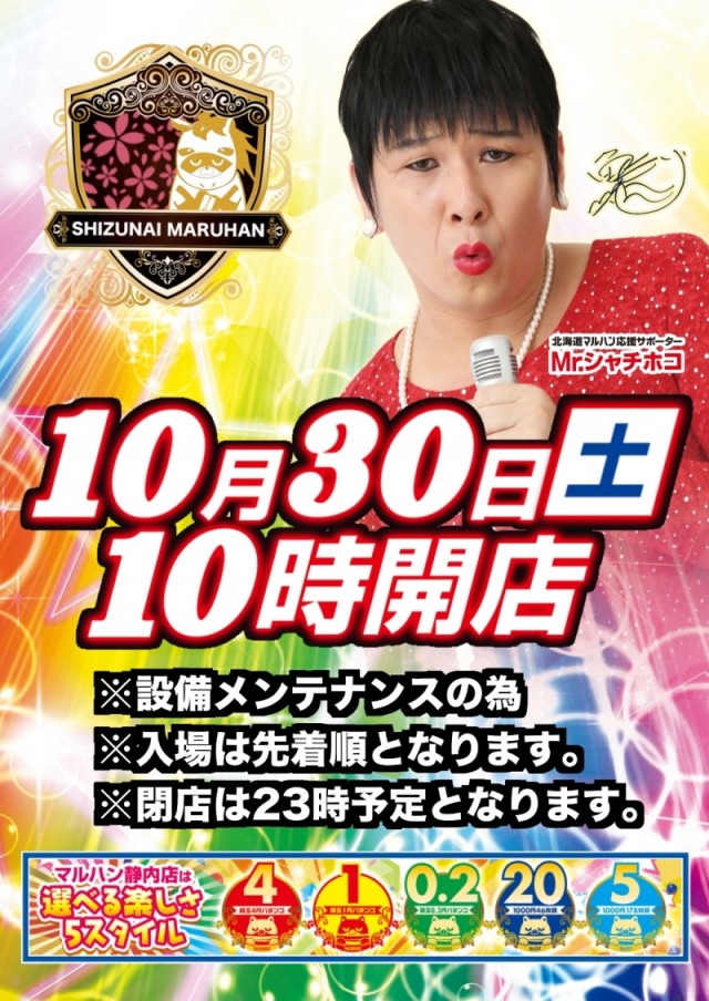 10月30日(土) マルハン静内店朝10時オープンです♪
