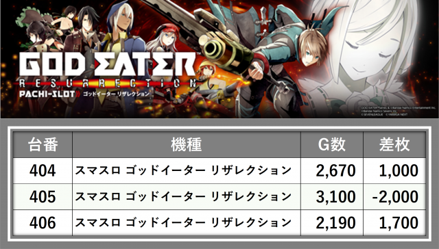 厳選された取材対象機種をはじめ、その他スロット全体から好記録が飛び出した!プレイヤーが楽しんだ1日を下記データにて振り返ってみて欲しい。