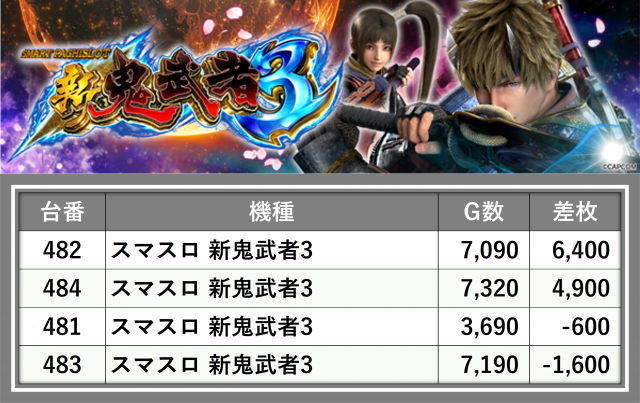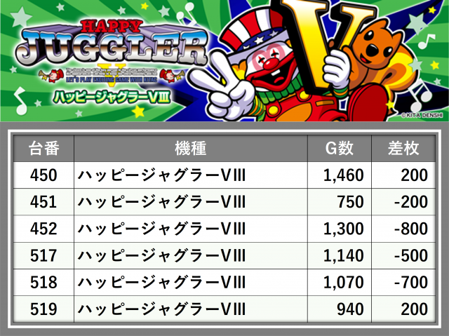 厳選された取材対象機種をはじめ、その他スロット全体から好記録が飛び出した!プレイヤーが楽しんだ1日を下記データにて振り返ってみて欲しい。