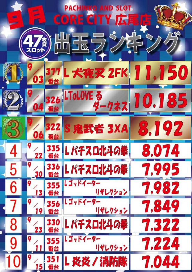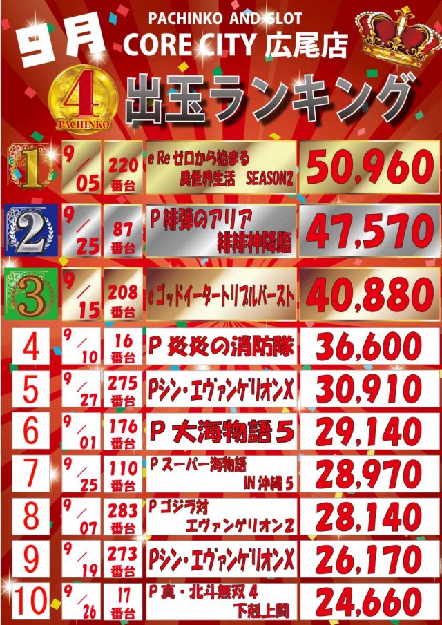 1位 10月18日(土) 2位 10月19日(日) 3位 9月27日(土)
