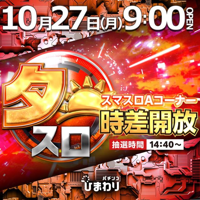 10月27日(月)9時開店!◆夕スロ&レディースコーナー設置