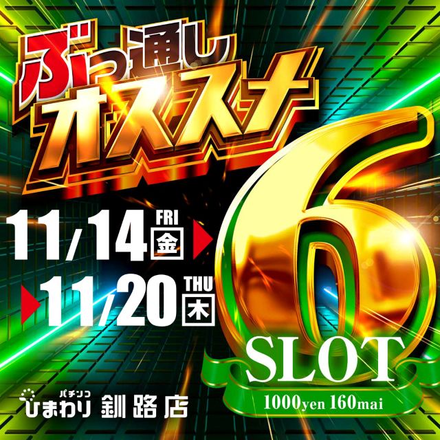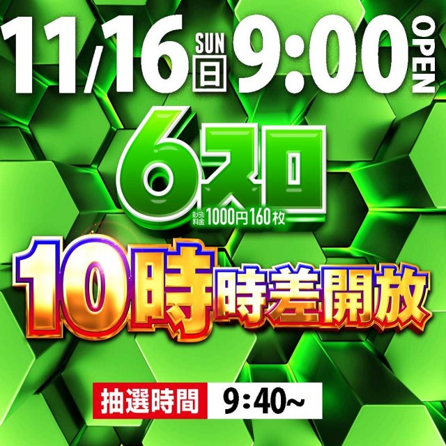 11月16日(日)9時開店!!レディース!&6スロ時差開放!