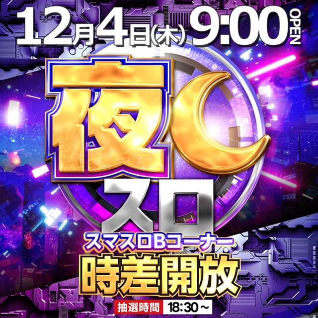 12月9日(火) 9時開店!スマスロBコーナー19時差解放