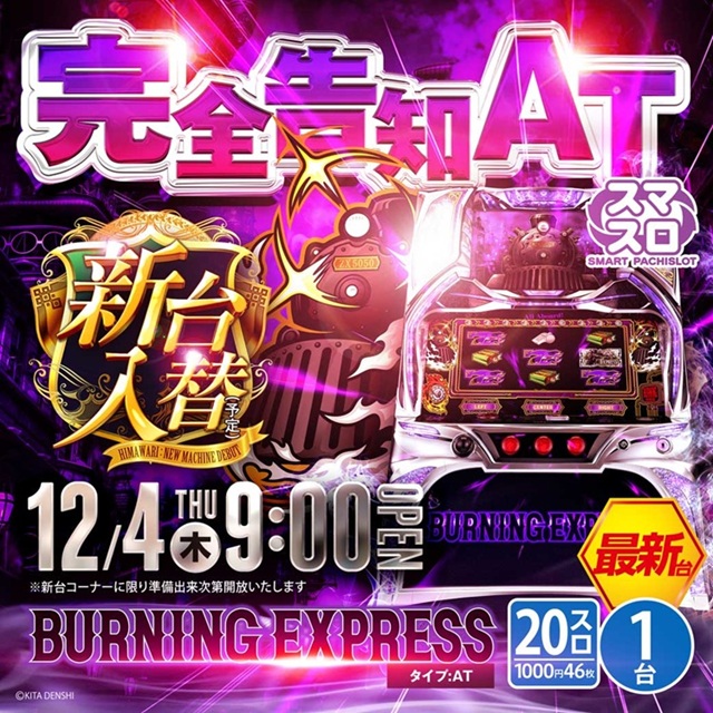 12月4日(木)9時開店!本日新台入替!!(予定)