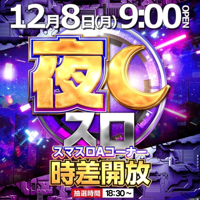 12月8日(月) 9時開店!スマスロAコーナー19時差解放