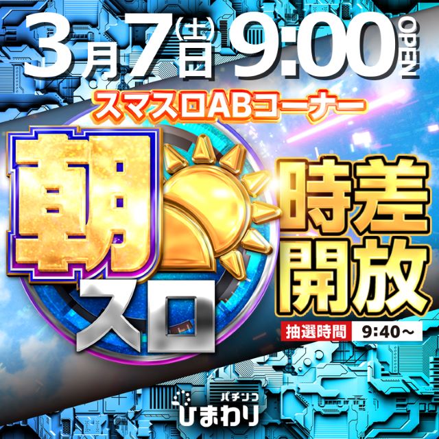 4月23日(木) 9時開店!夜スロ時差開放!!