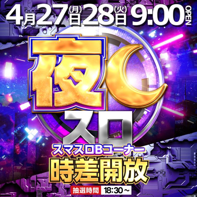 4月27日(月)9時開店!!!■夜スロ■スマスロBコーナー!