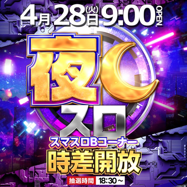 4月28日(火)9時開店!!!新台入替(予定)【夜スロ!】