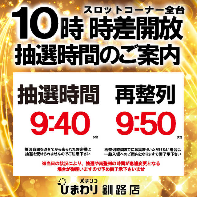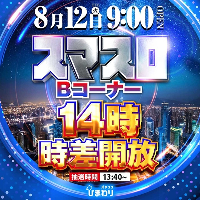 8月15日(金)9時開店!20スロ全台10時時差解放!