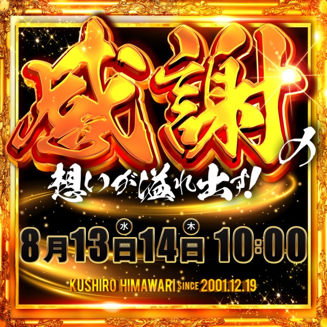 8月13日(水)10時開店!! 感謝の想いが溢れ出す!!