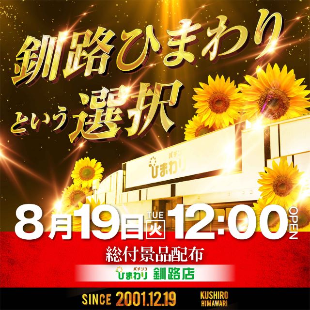 8月19日(火)12時開店!総付景品配布予定!ひまわり取材!