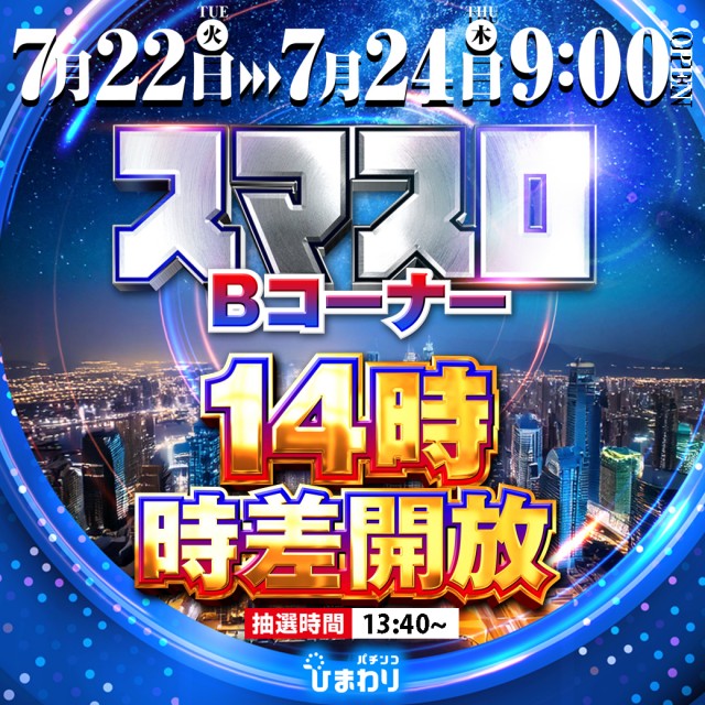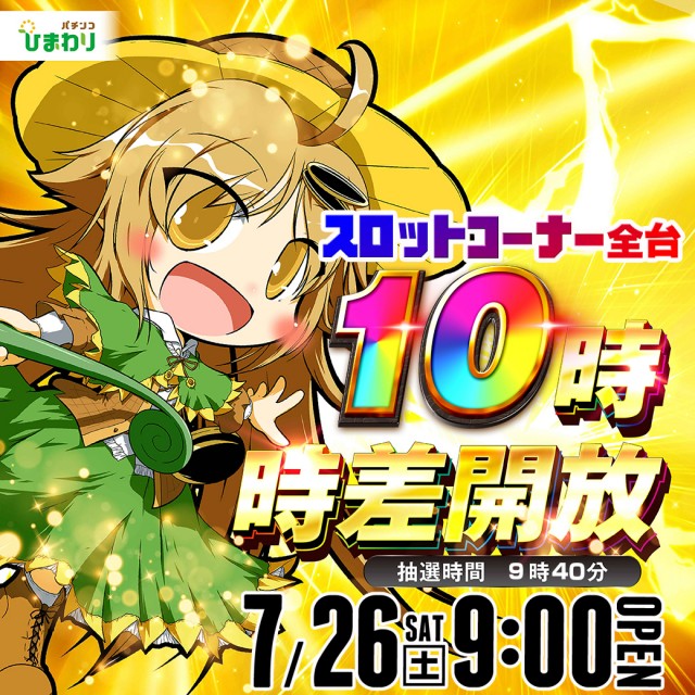 7月25日(金)9時開店!20スロ全台10時時差解放!