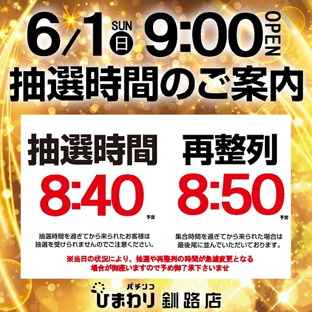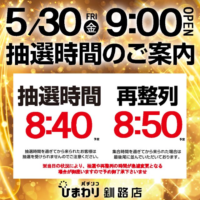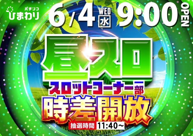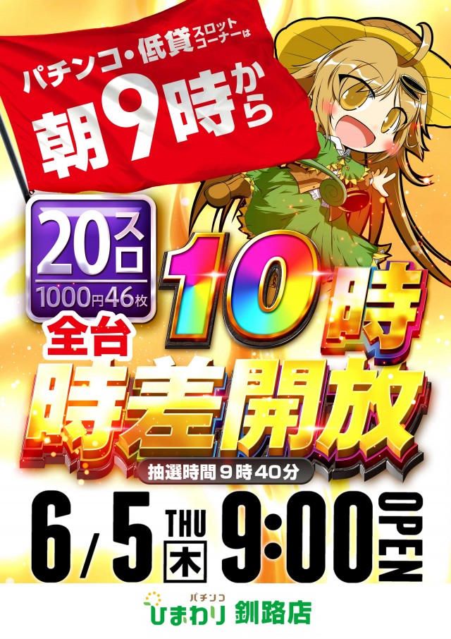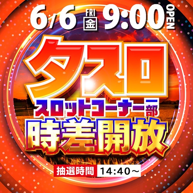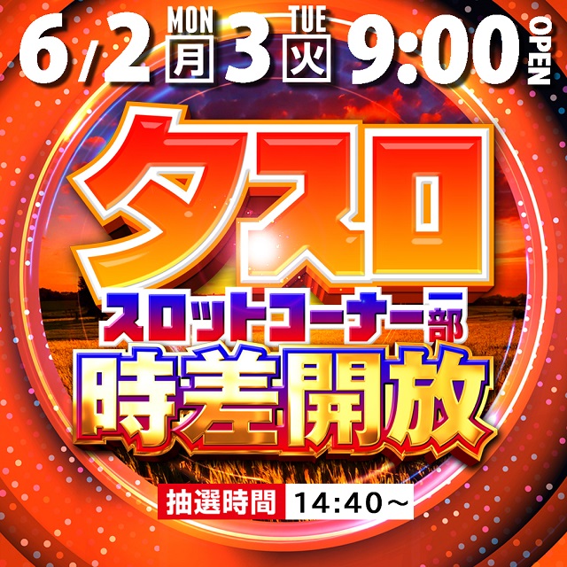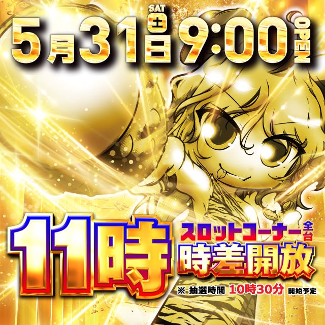 5月31日(土)9時開店!スロット全台11時 時差開放!