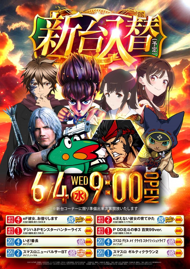 6月4日(水)9時開店 新台入替(予定)♦昼スロ♦夜スロ♦