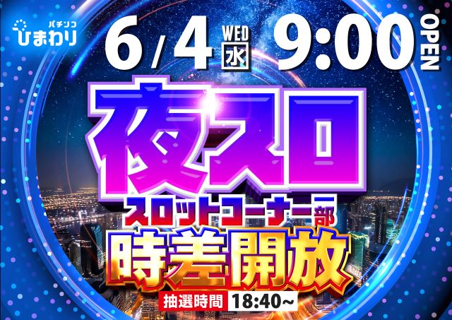 6月2日(月)【レディースコーナー】設置!夕スロ&夜スロ!
