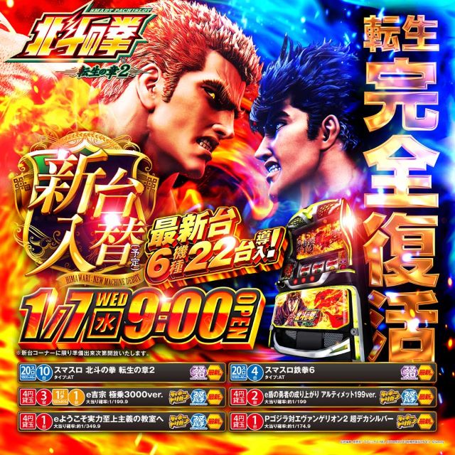 1月7日(水)9時開店!新台入替(予定)■ひまわり取材■