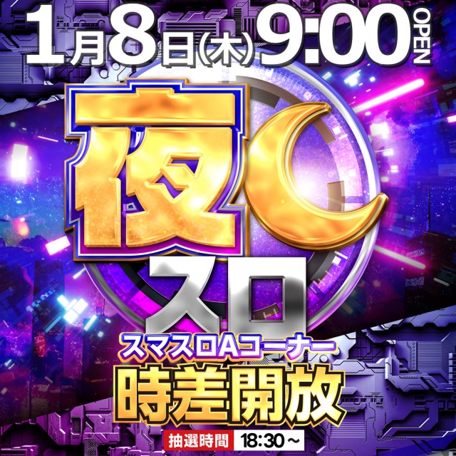 1月8日(木)9時開店!スマスロAコーナー19時時差解放!!