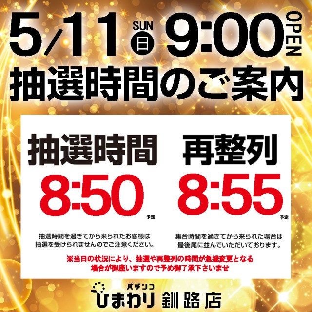 5月8日(木) 9時開店! ナカスロ&夜スロ時差開放!