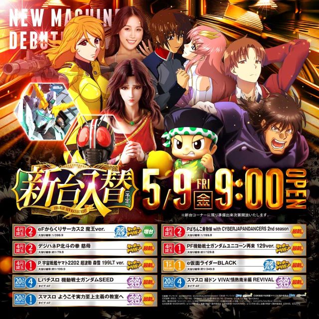 5月9日(金)9時開店!新台入替(予定)☆昼スロ☆★夜スロ★