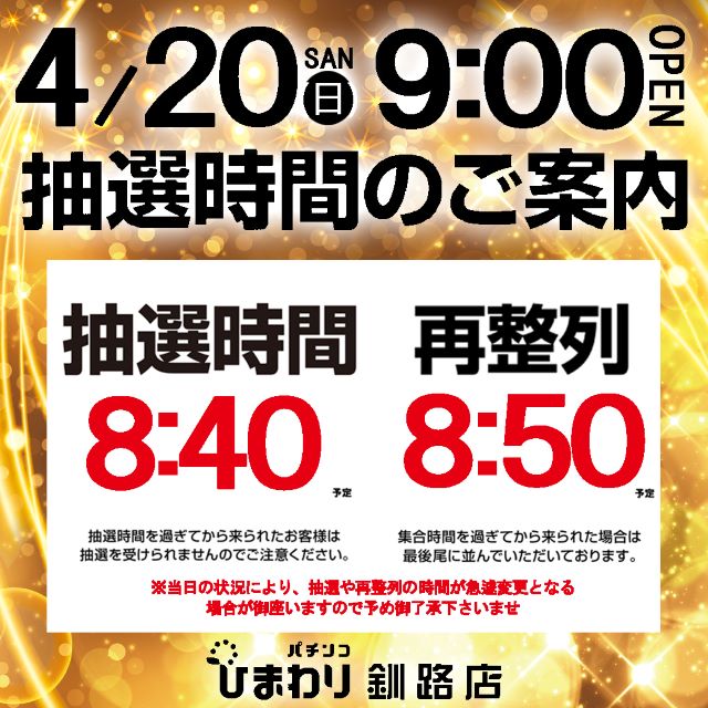 【釧路ひまわり】4月25日(金)9時開店☆夕スロ&夜スロ☆