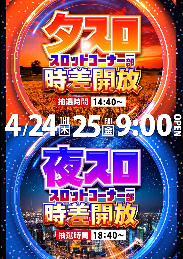 4月24日(木)9時開店☆夕スロ&夜スロ☆