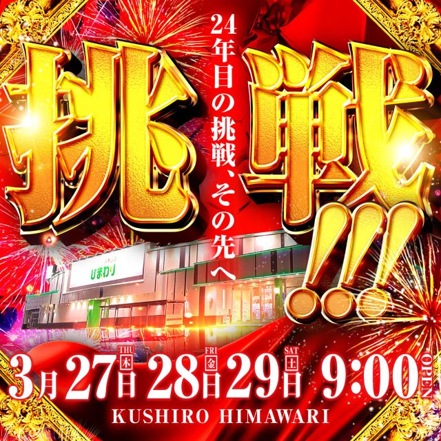 3月27日(木)9時開店!新台入替(予定)【 挑戦!!! 】