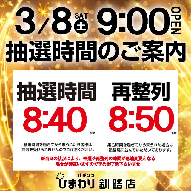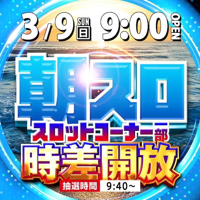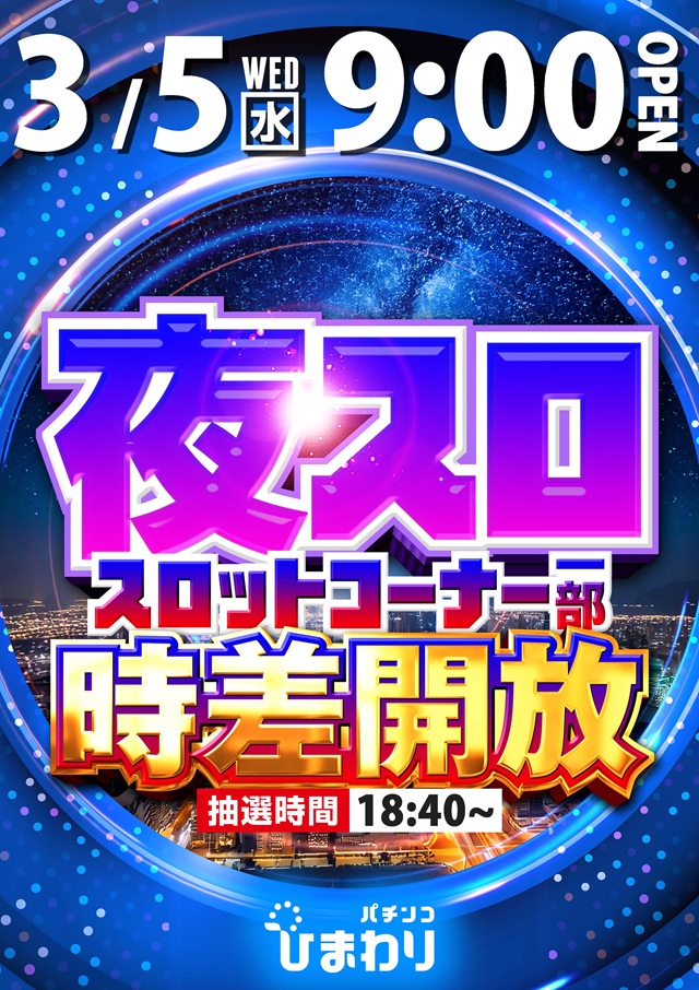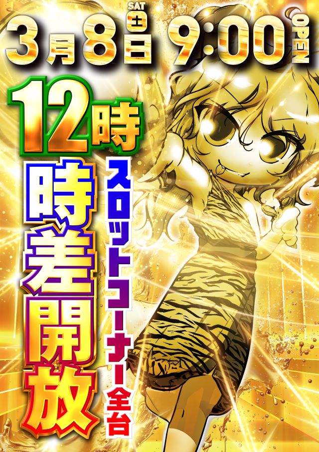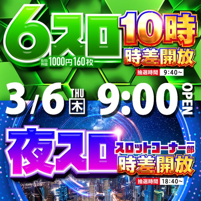 3月7日(金)スロット一部時差解放!☆夕スロ/夜スロ☆