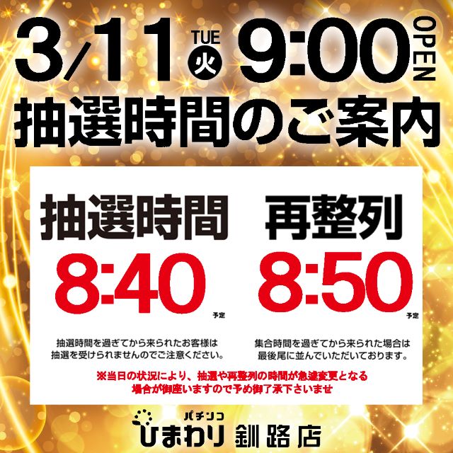 3月11日(月)9時開店!!スロパチ北海道取材!!!