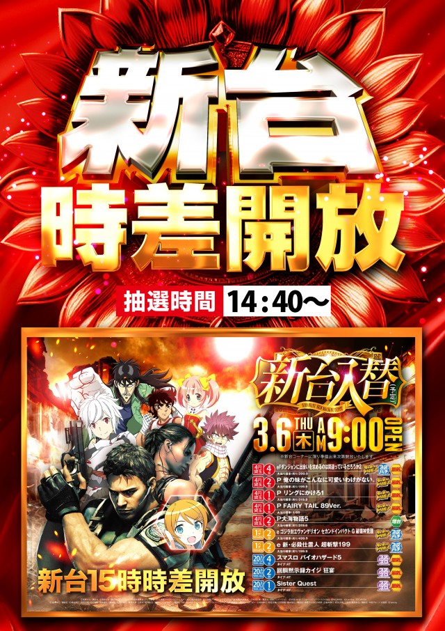 3月6日(木)新台入替予定!! ☆新台15時時差開放☆
