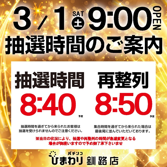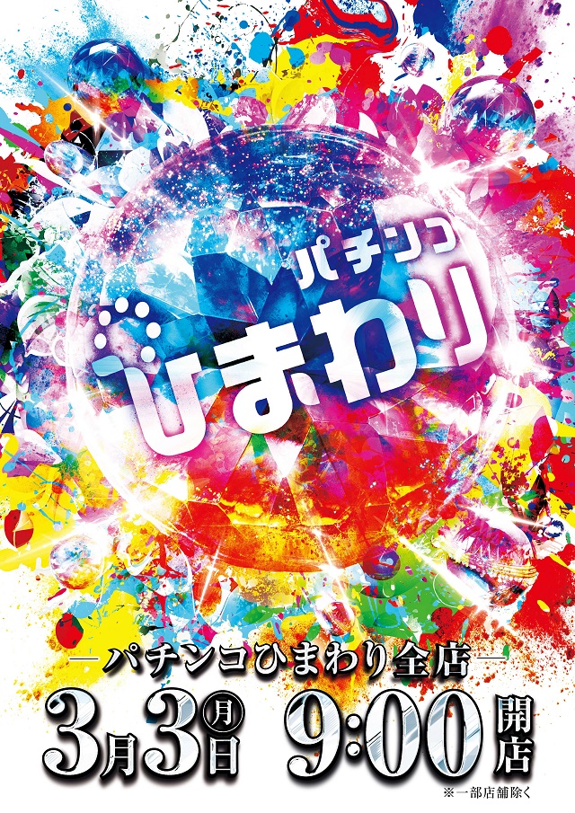 3月3日(月)パチンコひまわり全店9時開店!!