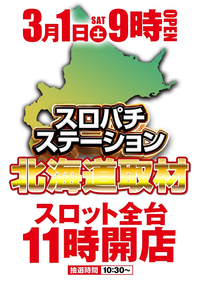 3月1日(土)スロパチ北海道取材&スロット全台11時時差開放