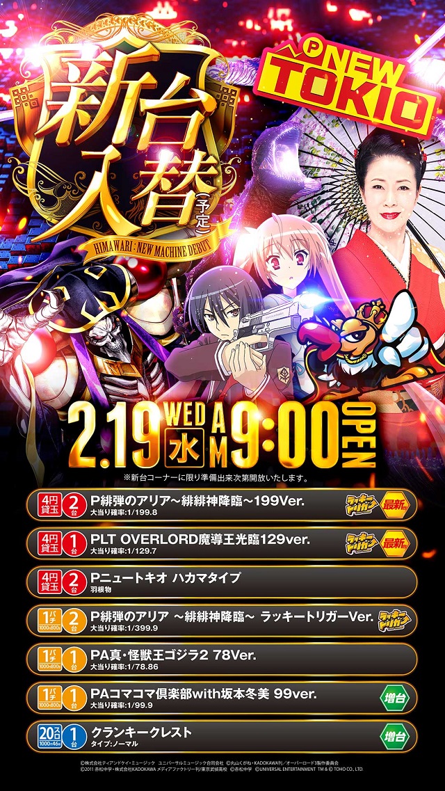 2月19日(水)9時開店!新台入替予定!