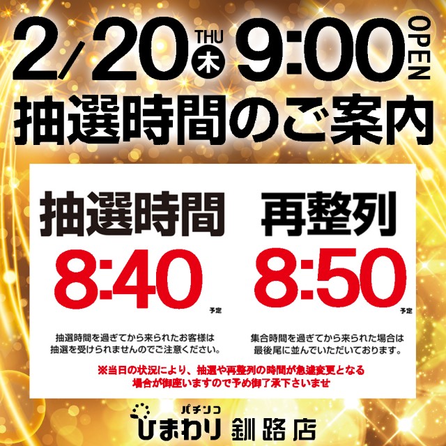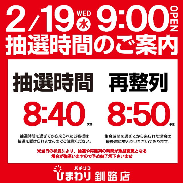 2月20日(木)9時開店!!! 釧路ひまわり!!!