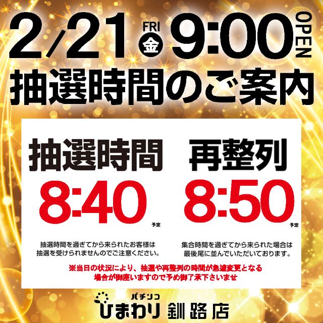 2月21日(金)9時開店!!! 釧路ひまわり!!!