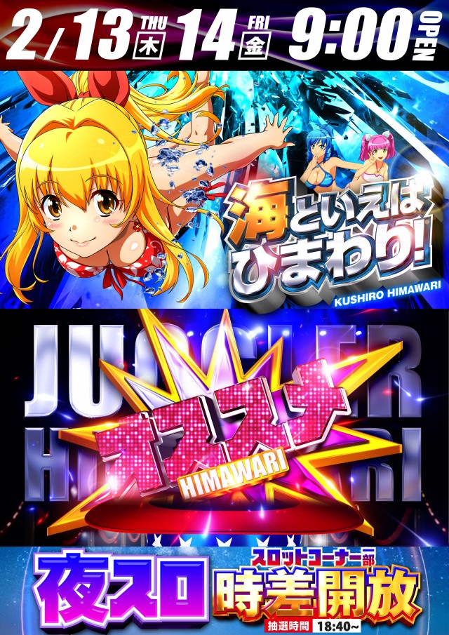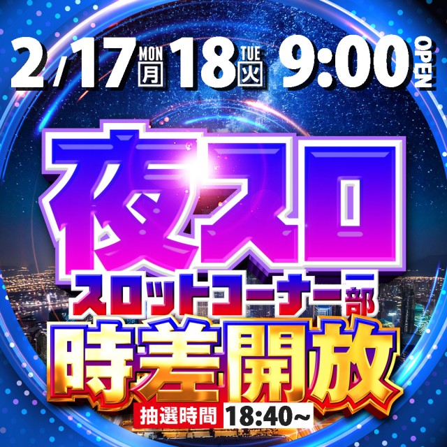 2月17日(月) 9時開店! 夜スロ19時時差開放!