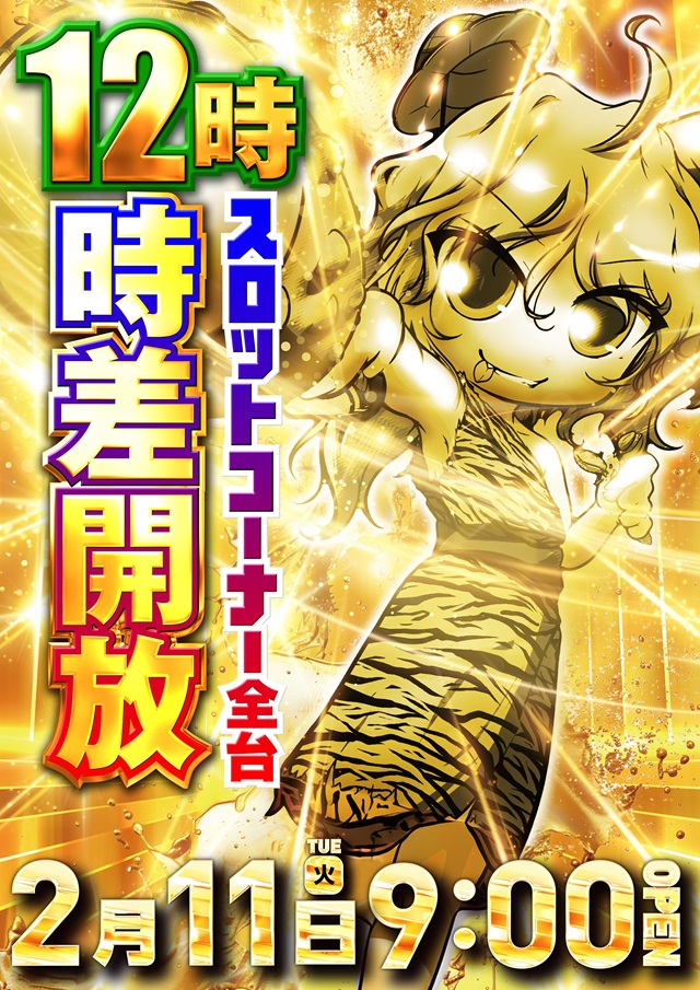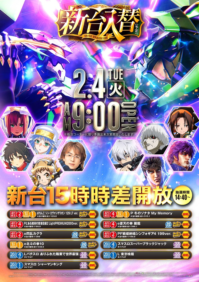 2月4日(火)9時開店 新台入替(予定)新台時差開放&夜スロ