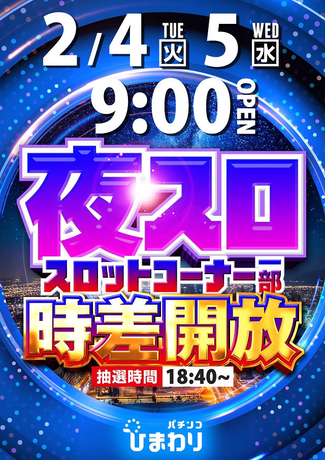 2月5日(水)9時開店! 夜スロ!