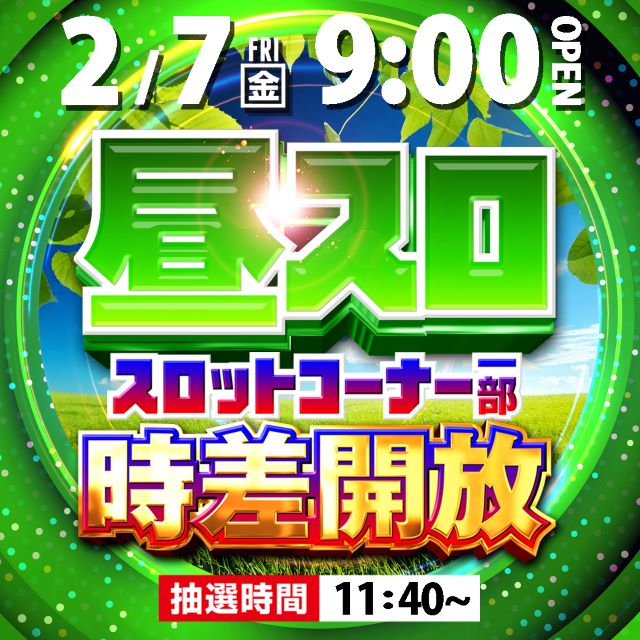 2月7日(金)9時開店!挑戦!!! ☆昼スロ☆