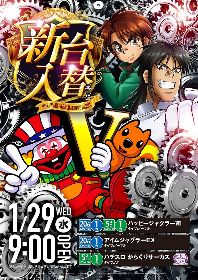 1月29日(水)9時開店! 新台入替(予定)