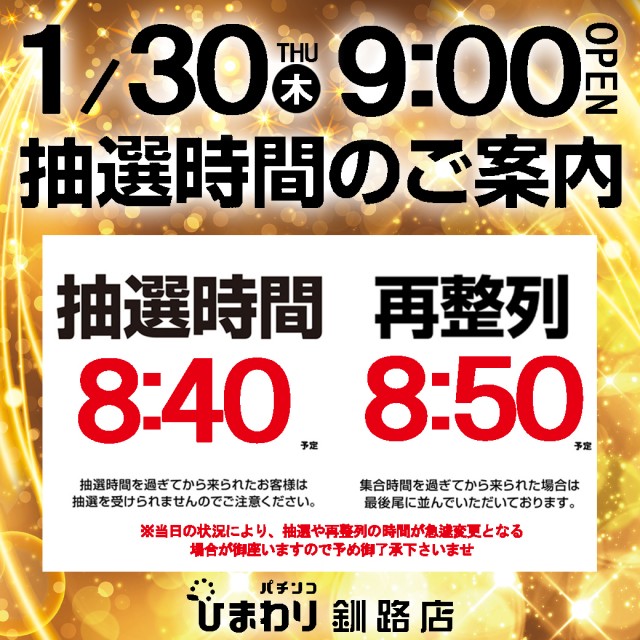 1月30日(木)9時開店!! ★8時40分抽選★
