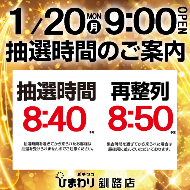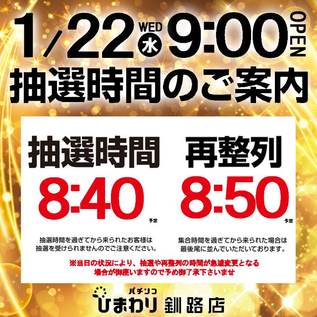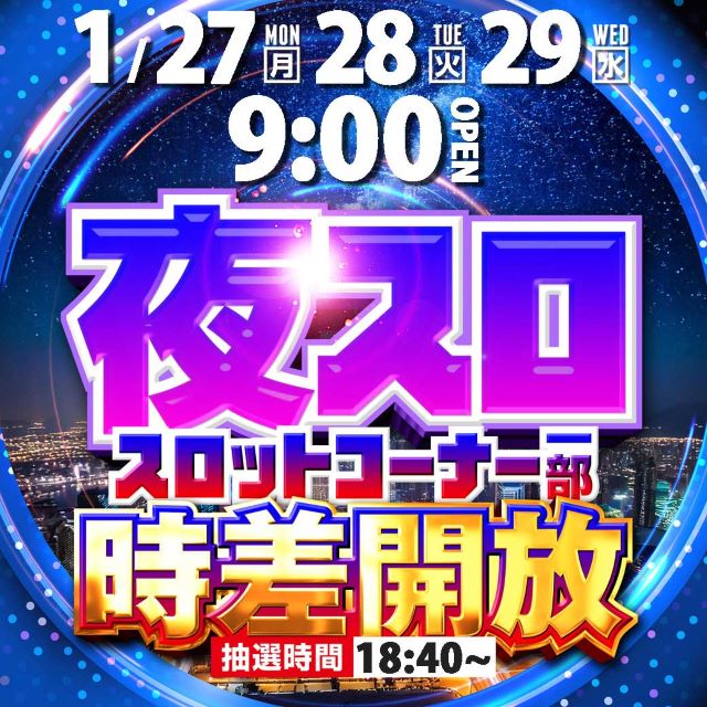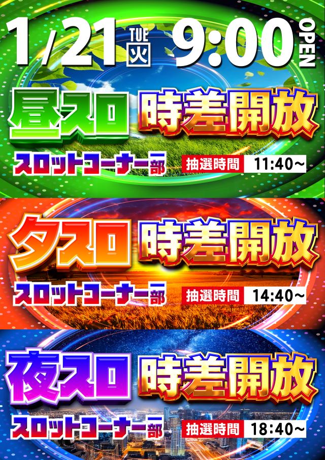1月21日(火)9時開店‼☆スロット一部時差解放☆