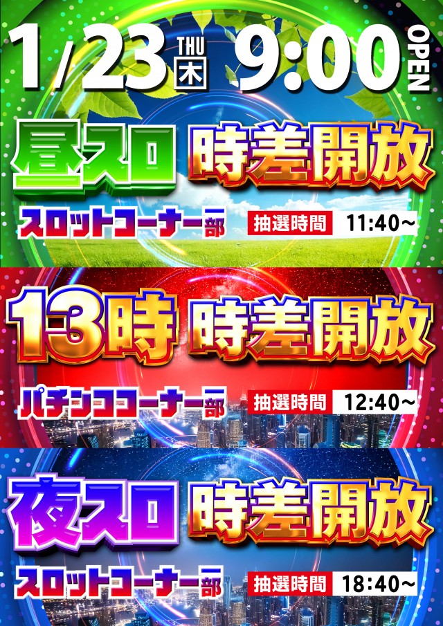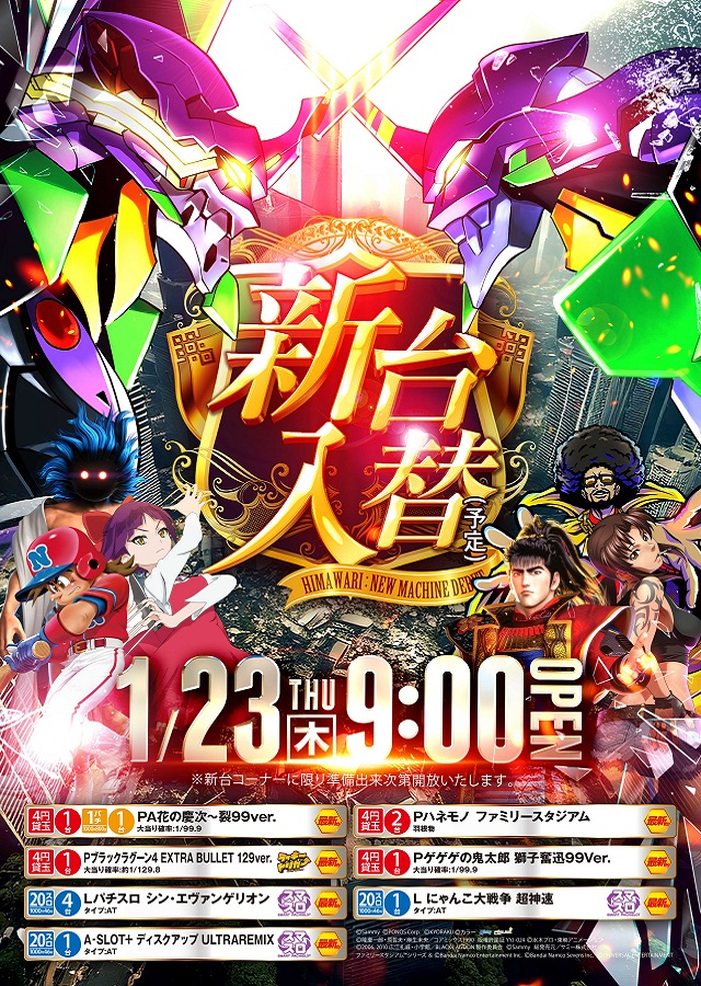 1月23日(木)新台入替(予定)9時開店!!