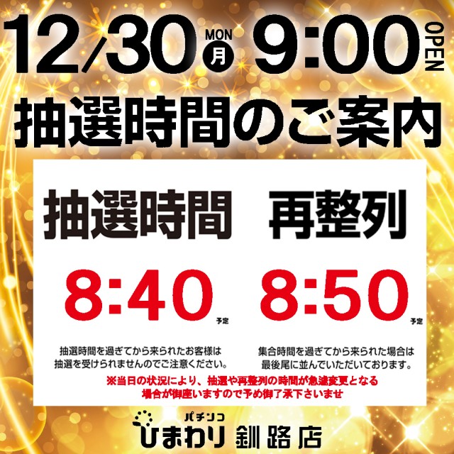 12月30日(月)9時開店!!
