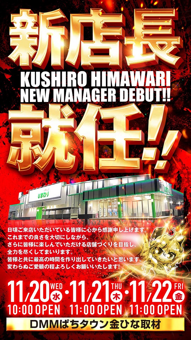 11月20日(水)10時開店!新台入替!DMM金ひな取材!
