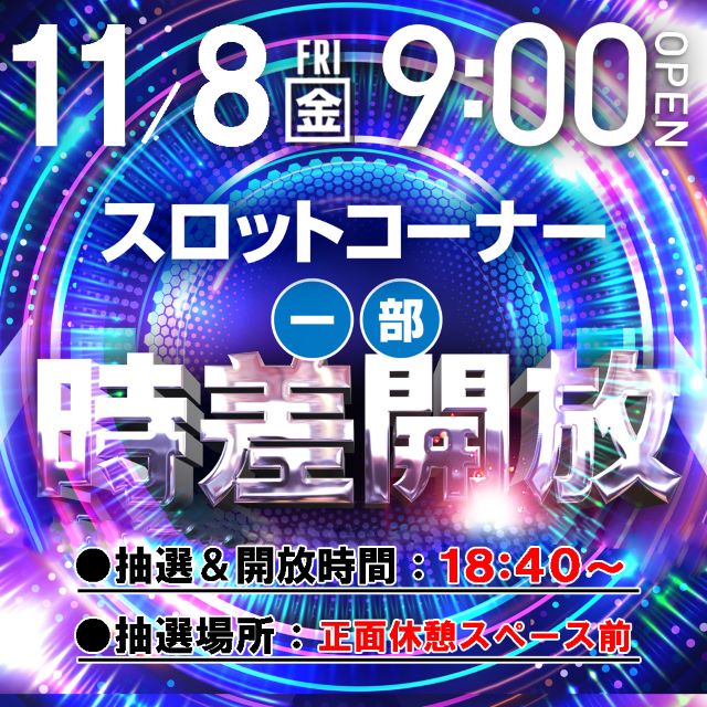 11月8日(金) ☆スロットコーナー☆ 一部時差開放!!