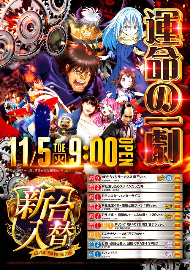 11月5日(火) 9:00開店! 新台入替(予定)
