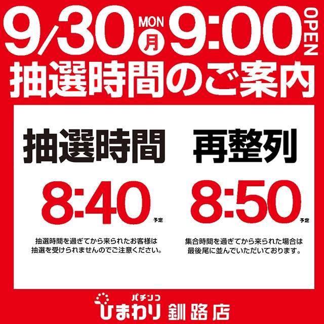 10月1日(火)パチンコひまわり10時00分開店!!